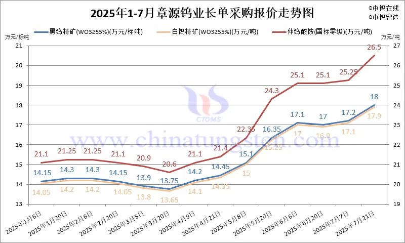4.4 2025年7月份章源钨业长单报价走势图