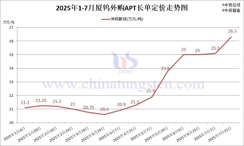 4.3 2025年7月份厦门钨业长单报价走势图