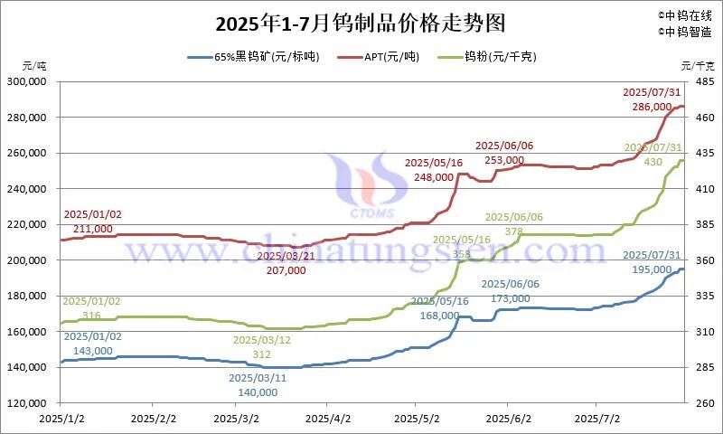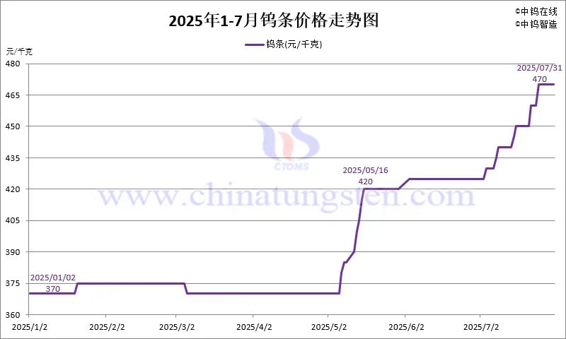 3.5 2025年7月份钨条价格走势图