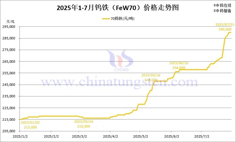 3.4 2025年7月份钨铁(FeW70)价格走势图