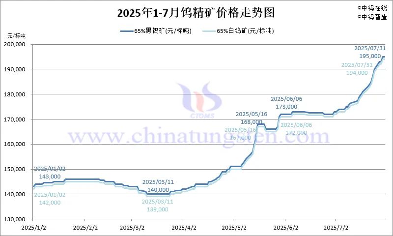 4.5 2025年7月份翔鹭钨业长单报价走势图