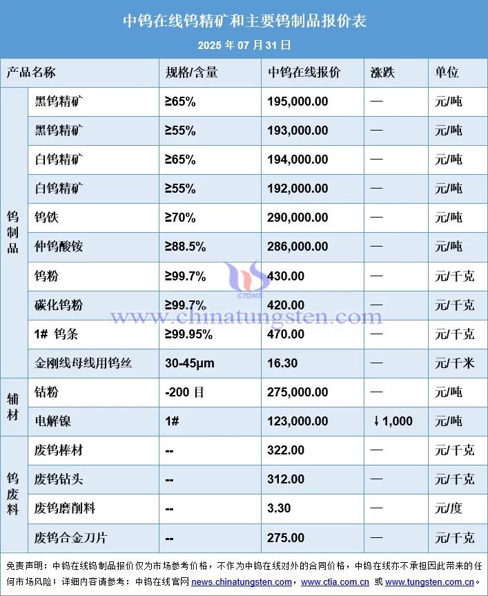 一、2025年7月份钨制品价格走势搭搭网